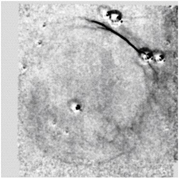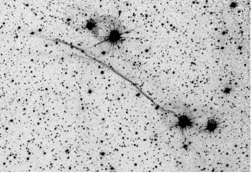 Figure 1. Optical image of northwest filament of SN 1006. Filament is 10' long. The star in the lower right intersecting the filament is SAO 225384, magnitude +8.1.