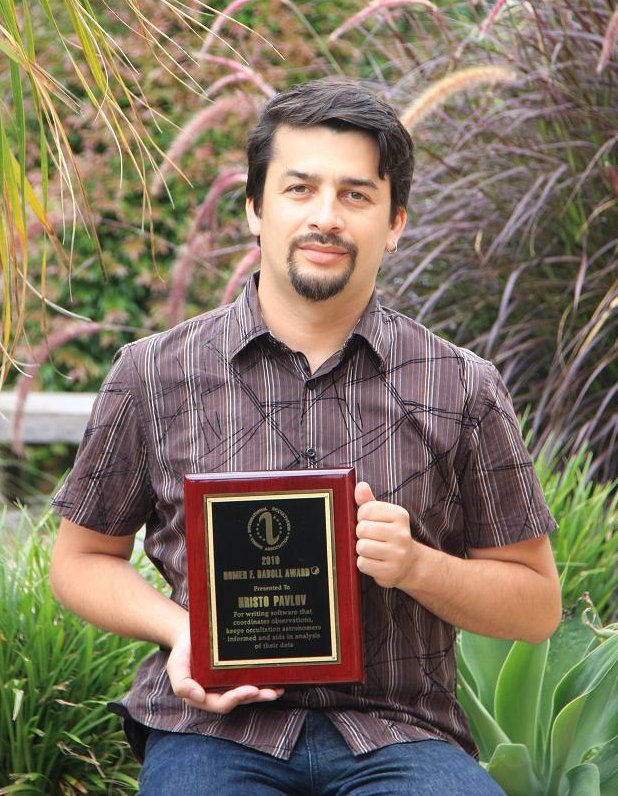 The 2010 Homer F. Daboll award recipient was Hristo Pavlov from Australia for his dedicated contributions in “writing software that coordinate observations, keeps occultation astronomers informed and aids in analysis of their data.” Hristo’s OccultWatcher program located here: http://www.hristopavlov.net/OccultWatcher/OccultWatcher.html. It allows observers to post their proposed asteroid occultation sites to avoid duplication of chord efforts along with many other useful features.