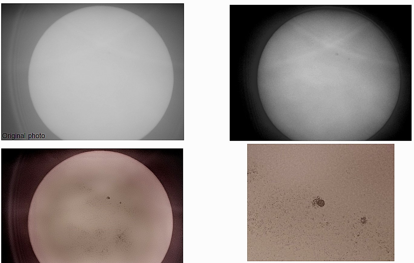 The skies over central Texas for the Nov 11, 2019 Mercury transit were overcast all day. With a few short hazy breaks in the clouds (no blue sky) and barely enough time to focus, I was able to get just 2 photos of the Sun with my Questar, one was focused. With some processing, Mercury appeared.