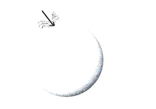 "Afterwards it (the crescent moon) resumed its proper state. This phenomenon was repeated a dozen times or more, the flame assuming various twisting shapes at random and then returning to normal." Evidently, "the flame" continued throughout the writhing process, which can be attributed to the large-scale motion of gas clouds. Because the duration of a "flame" consisting of incandescent gases or other material among the ejecta should be short compared to the time scale for the motion of large gas clouds, some uncertainty exists regarding the interpretation of "the flame." Instead of consisting of incandescent material, the appearance of a "flame" could be produced by sunlight reflected from dust particles moving as ejecta from the crater, just after the impact.