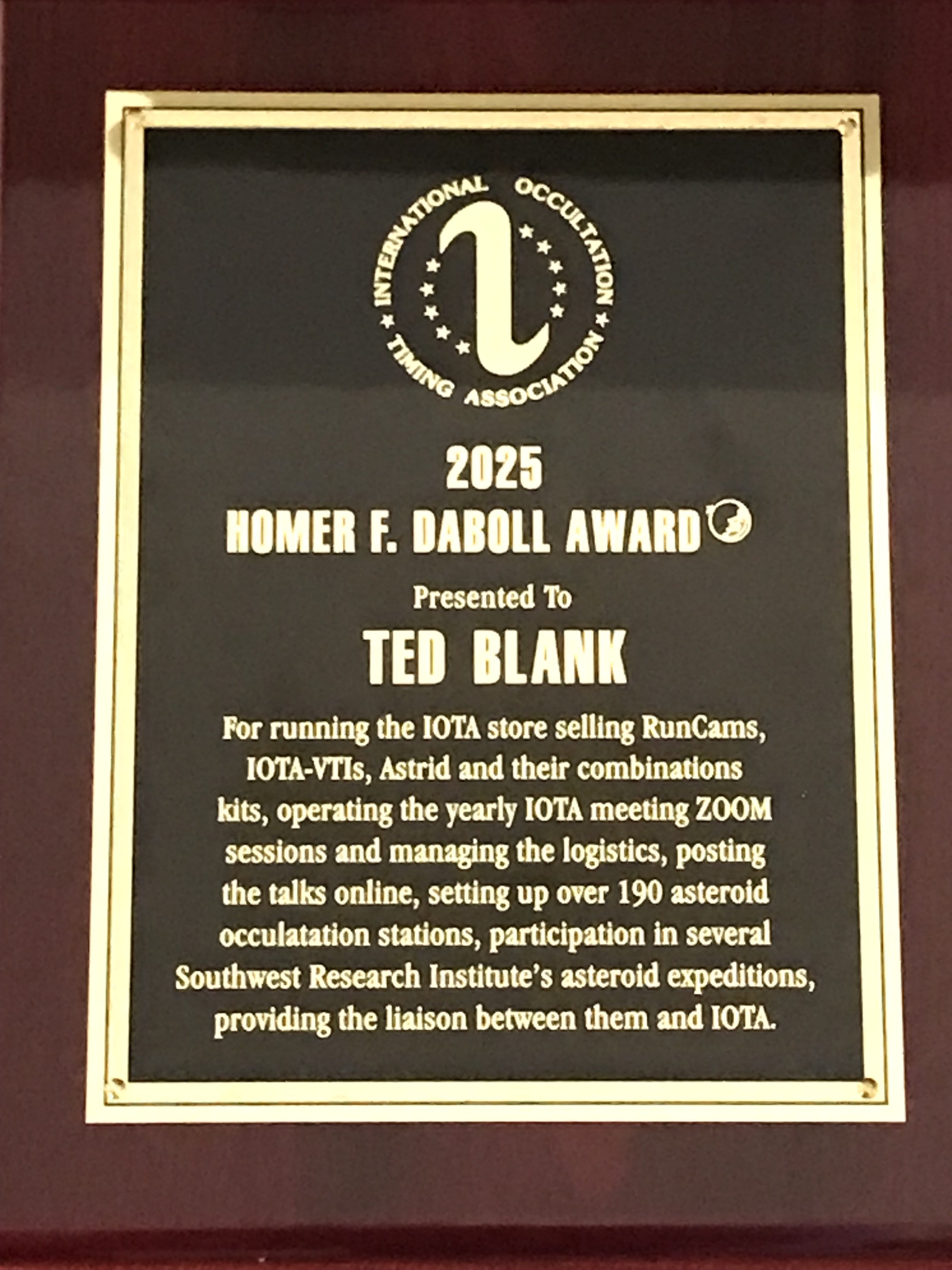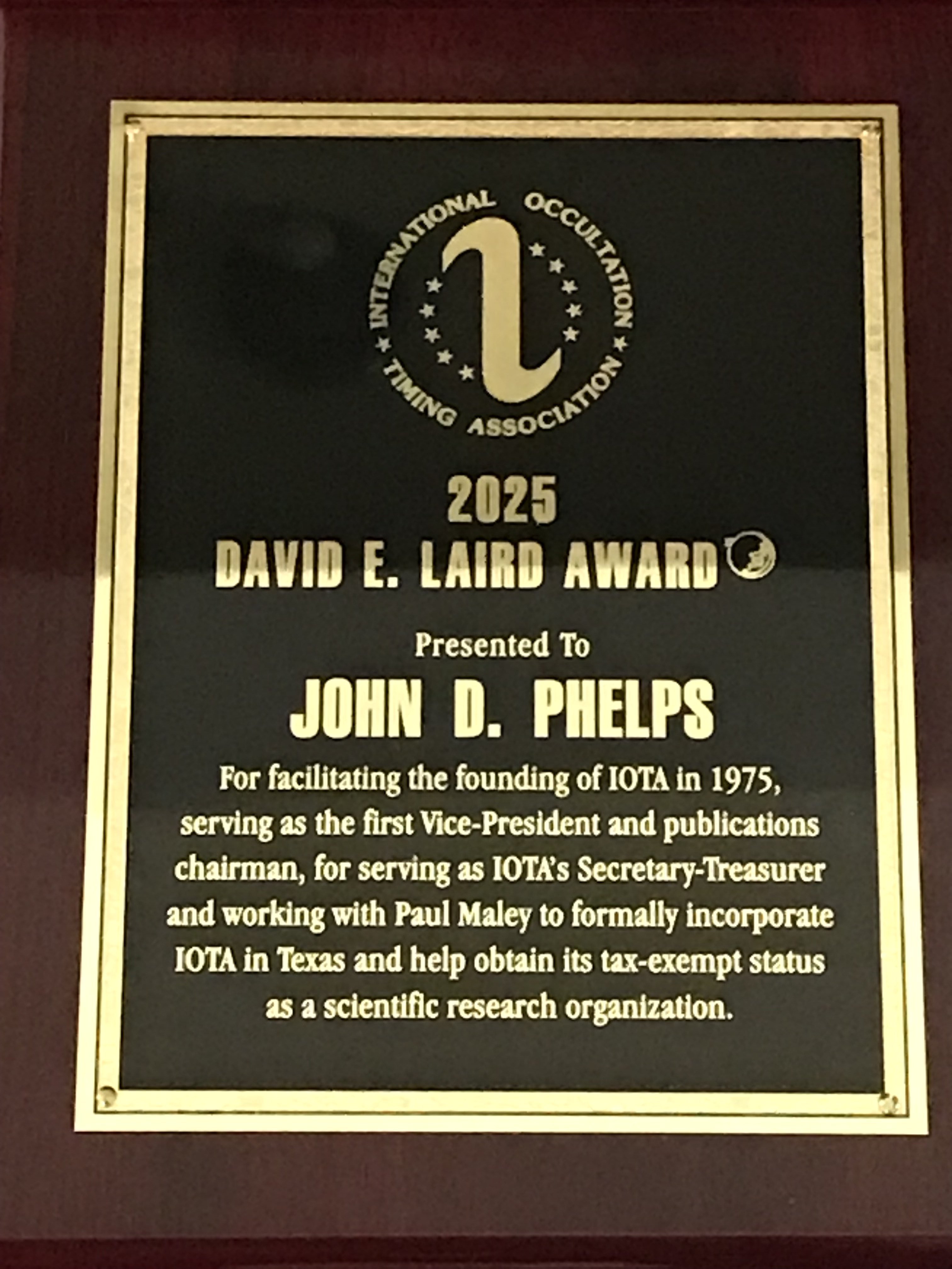 Occultation (MADAMO). This cash award will be sent to Dave Gault