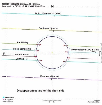 observation path in the center of the asteroid shadow showing